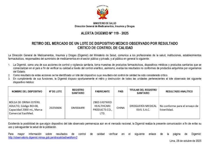 La Dirección General de Medicamentos Insumos y Drogas a través de la Dirección de Dispositivos Médicos y Productos Sanitarios, invita a los directores técnicos de los Laboratorios y Droguerías de Dispositivos Médicos que se encuentren registrados en DIGEMID a participar de la Reunión Técnica virtual.