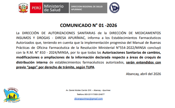 Comunicados emitidos por la Dirección General de Medicamentos, Insumos y Drogas